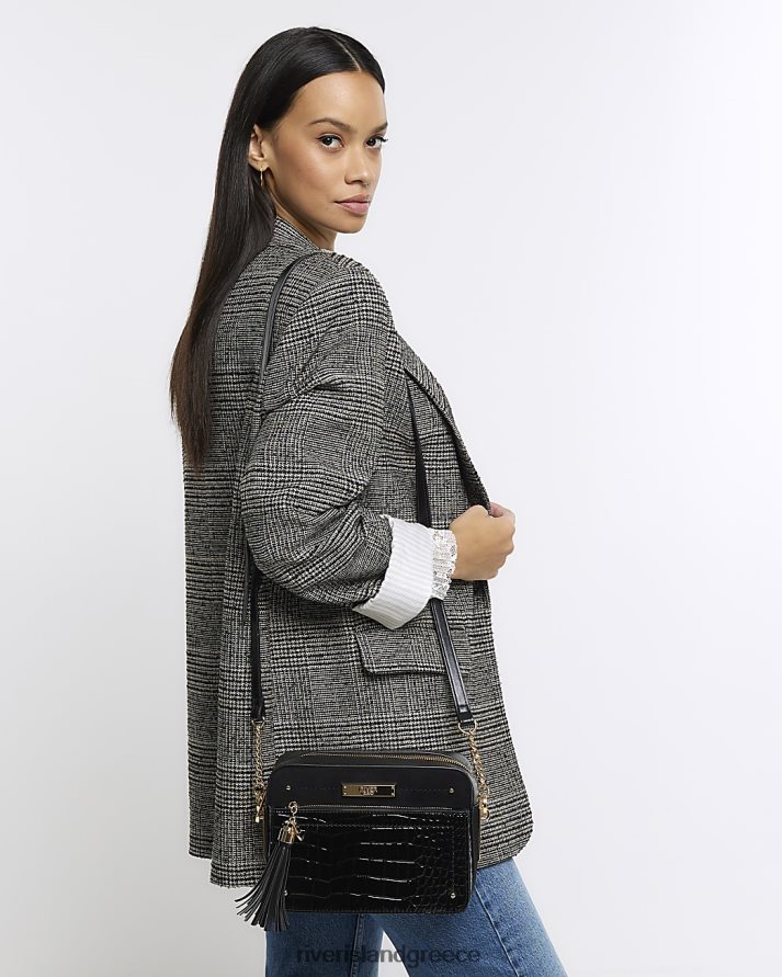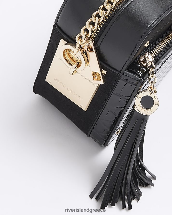 River Island αξεσουάρ μαύρος γυναίκες Τσάντα χιαστί με αλυσίδα με ανάγλυφο κροκό B6N8X3719