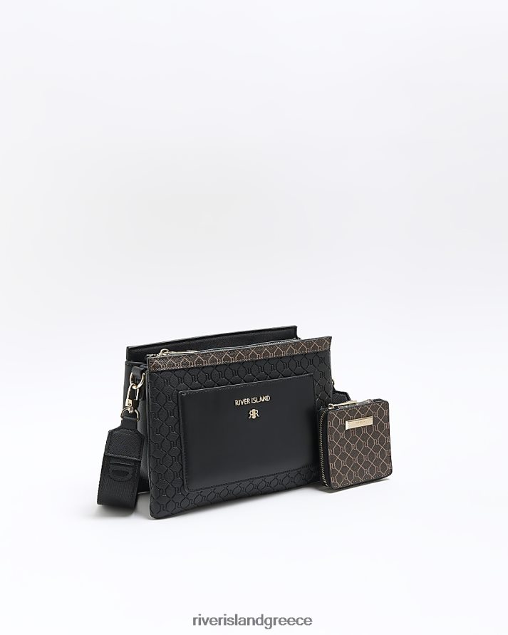 River Island αξεσουάρ μαύρος γυναίκες τσάντα χιαστί πουγκί μονόγραμμα B6N8X610