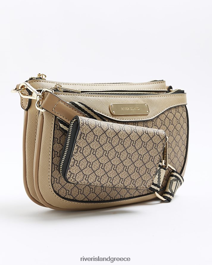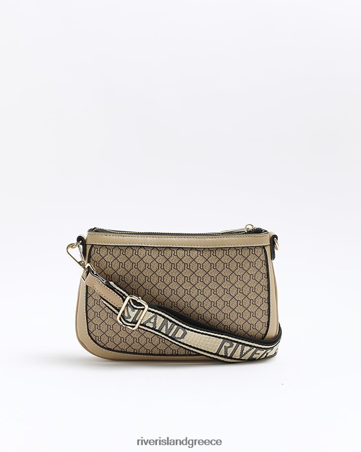River Island αξεσουάρ μπεζ γυναίκες μονόγραμμα χιαστί τσάντα και τσαντάκι B6N8X937