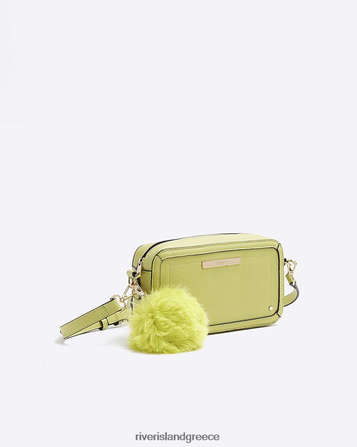 River Island αξεσουάρ πράσινος γυναίκες Τσάντα χιαστί από ψεύτικο δέρμα πομ πομ B6N8X840