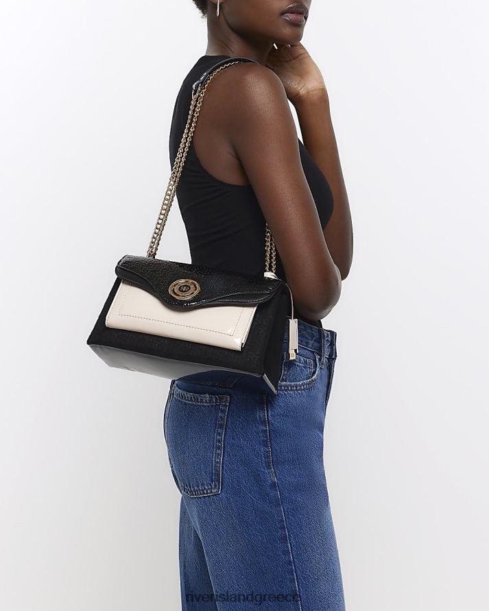 River Island αξεσουάρ μαύρος γυναίκες τσάντα ώμου με ανάγλυφη αλυσίδα B6N8X926