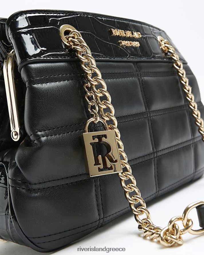 River Island αξεσουάρ μαύρος γυναίκες τσάντα ώμου με καπιτονέ αλυσίδα B6N8X4639