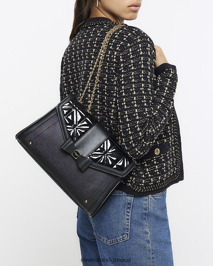 River Island αξεσουάρ μαύρος γυναίκες Τσάντα ώμου με καπιτονέ φιόγκο B6N8X697