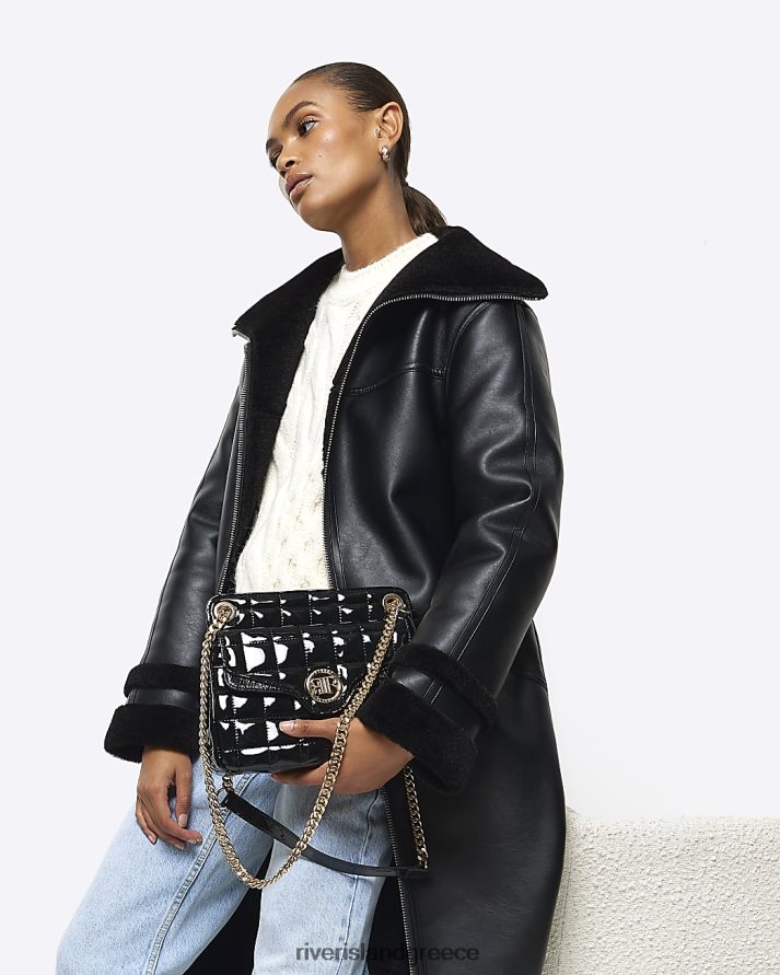 River Island αξεσουάρ μαύρος γυναίκες τσάντα ώμου με λουράκι με πατέντα B6N8X1223