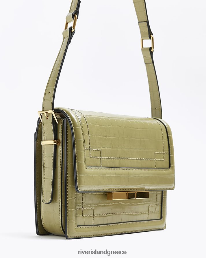 River Island αξεσουάρ χακί γυναίκες Τσάντα ώμου με ανάγλυφο κροκό B6N8X1177
