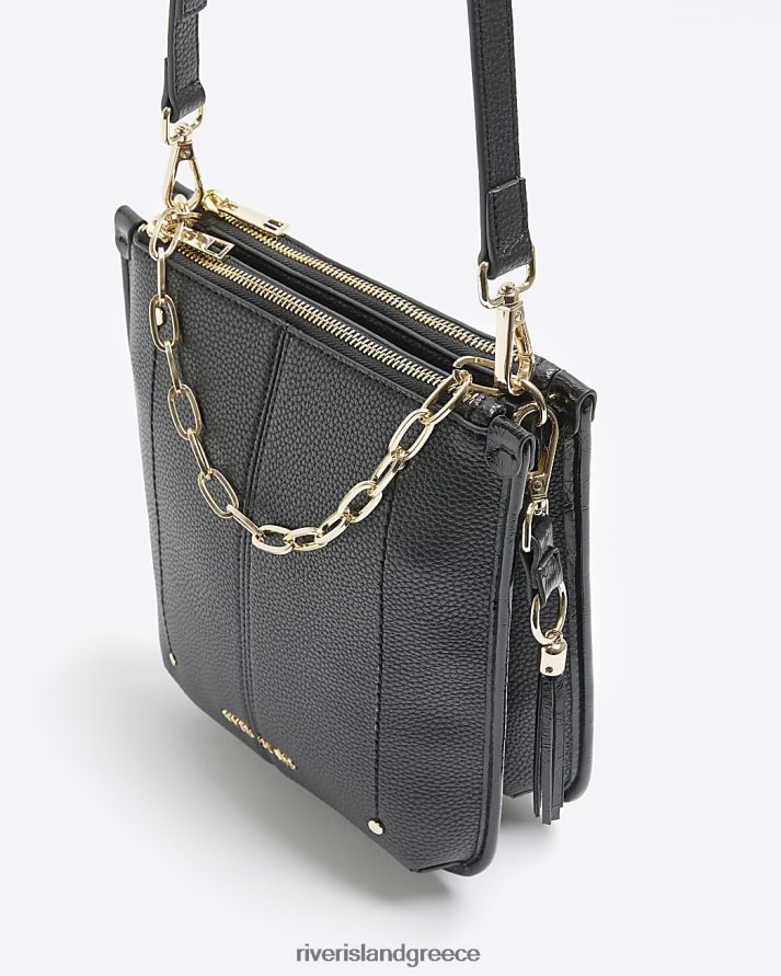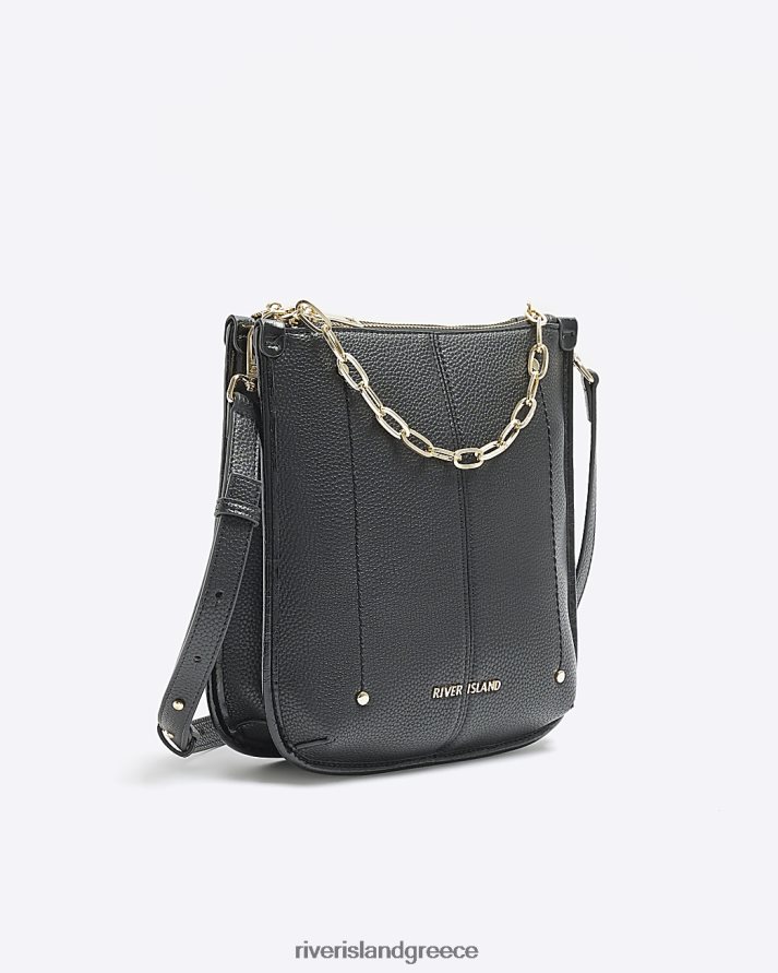 River Island αξεσουάρ μαύρος γυναίκες τσάντα messenger με λεπτομέρεια αλυσίδας B6N8X4549