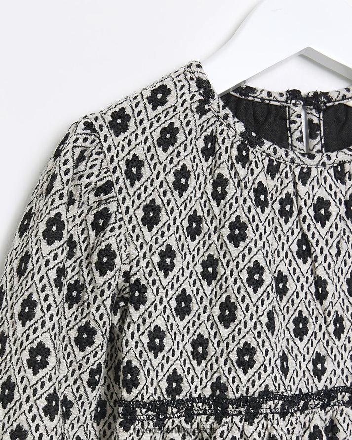 River Island ενδύματα μαύρος κορίτσια mg λουλουδάτο ζακάρ φόρεμα B6N8X6646