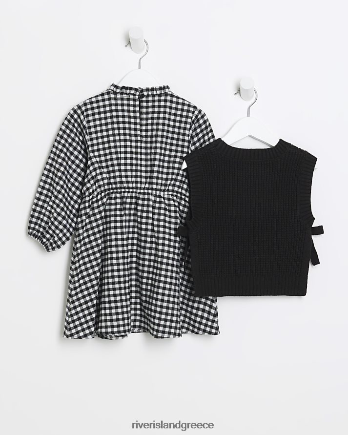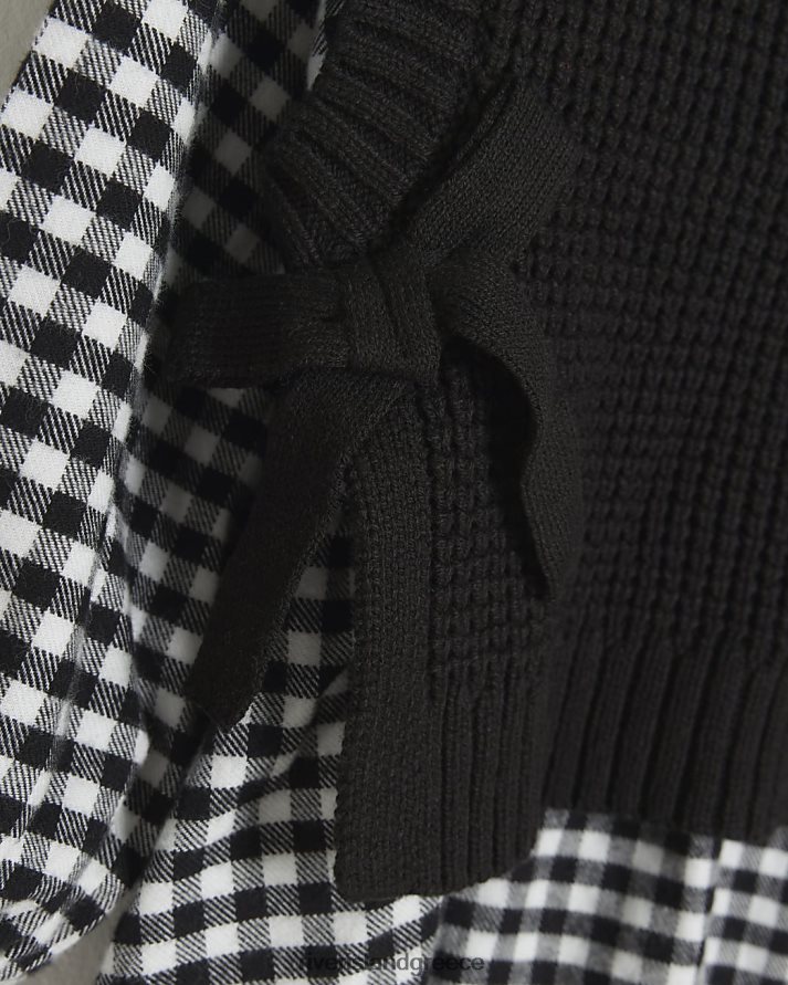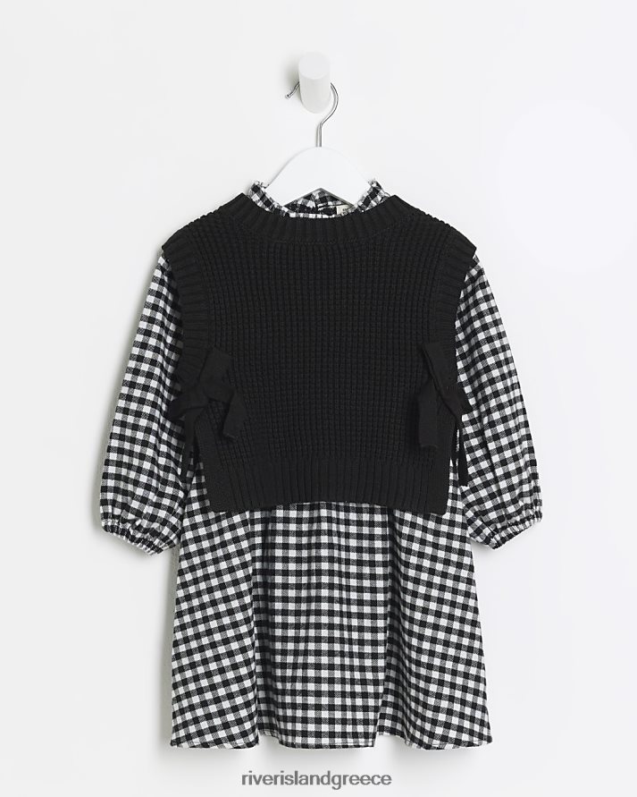 River Island ενδύματα μαύρος κορίτσια mg υβριδικό φόρεμα gingham B6N8X6625