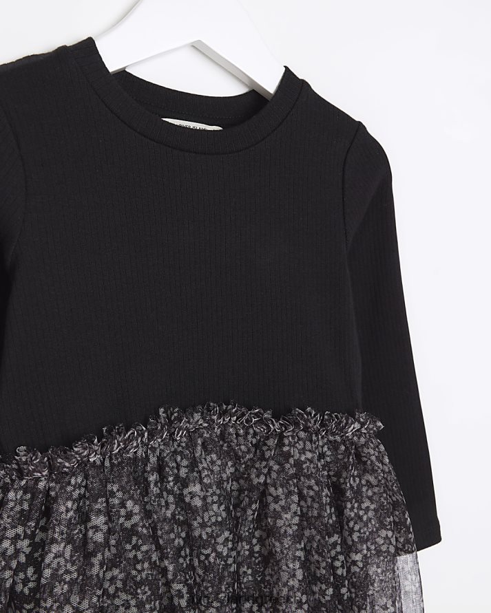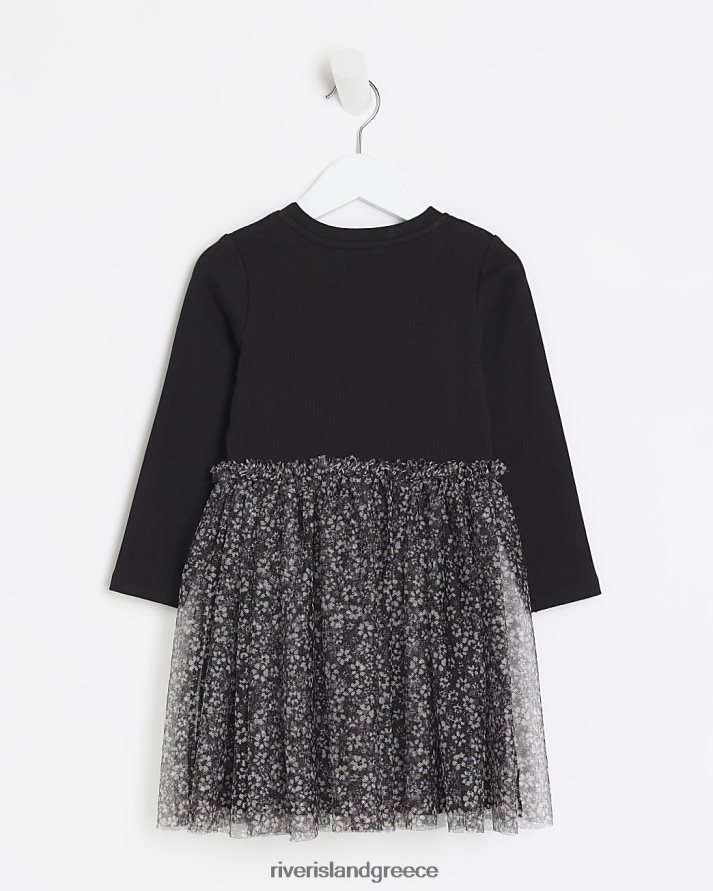 River Island ενδύματα μαύρος κορίτσια mg φλοράλ φόρεμα σκέιτερ B6N8X3475