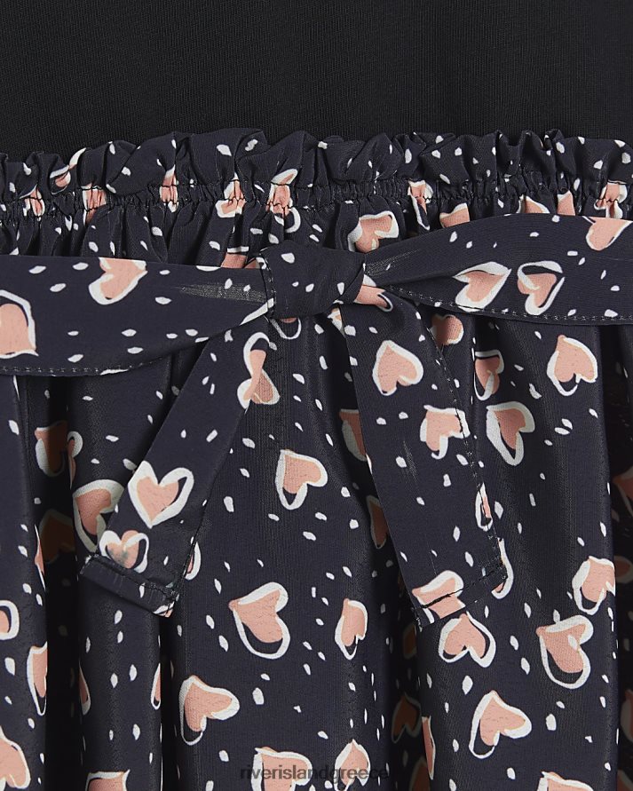 River Island ενδύματα μαύρος κορίτσια mg φόρεμα μπλουζάκι με στάμπα καρδιάς B6N8X3566