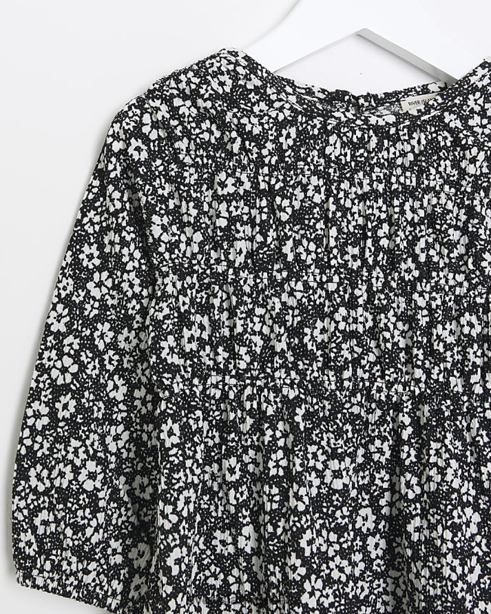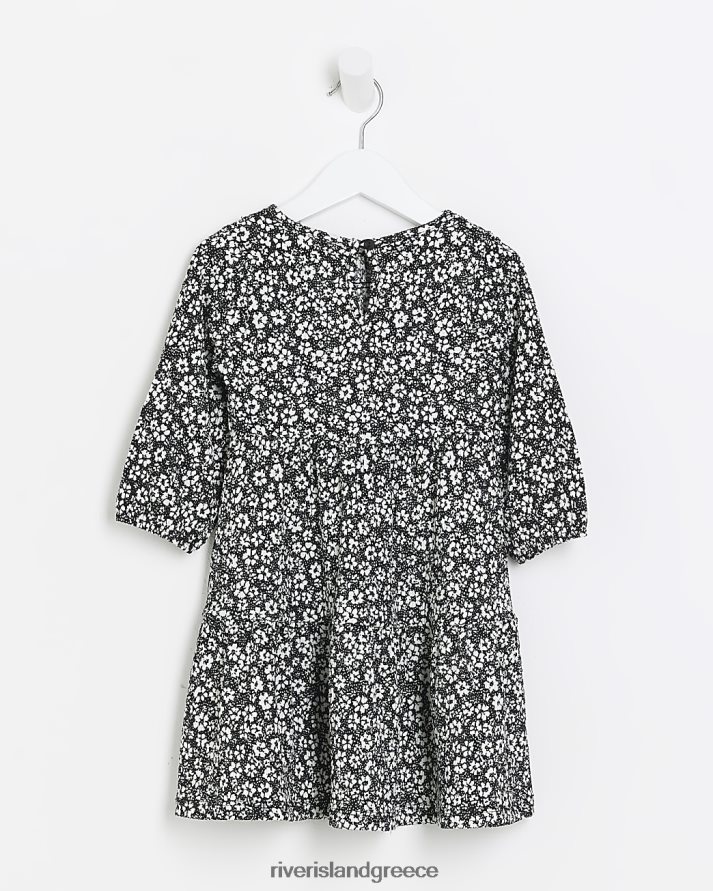 River Island ενδύματα μαύρος κορίτσια mg ditsy φλοράλ φόρεμα B6N8X6635