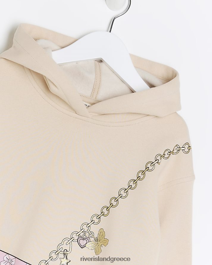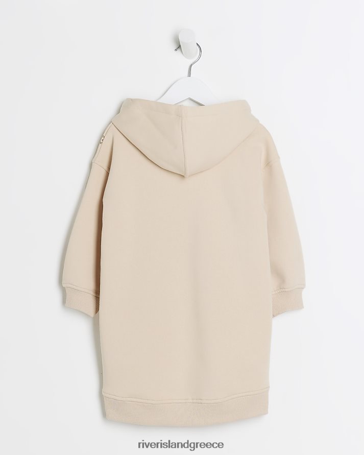 River Island ενδύματα μπεζ κορίτσια mg γραφικό φόρεμα με κουκούλα B6N8X6591