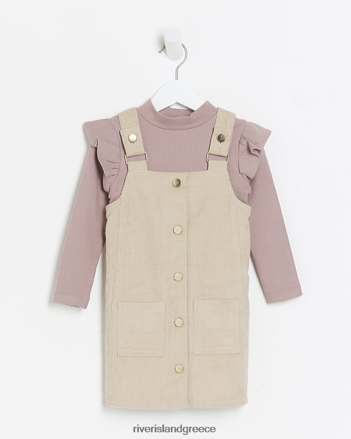 River Island ενδύματα μπεζ κορίτσια mg κορδόνι pinafore σετ φορέματος B6N8X6606