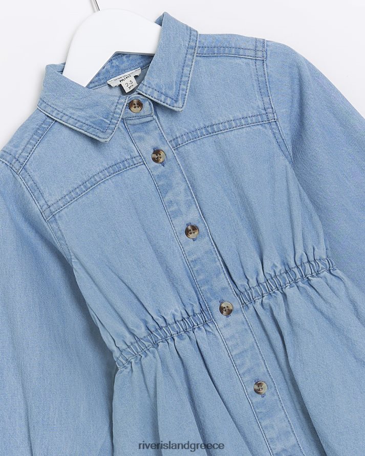 River Island ενδύματα μπλε κορίτσια mg τζιν φόρεμα με φουσκωτά μανίκια B6N8X6544