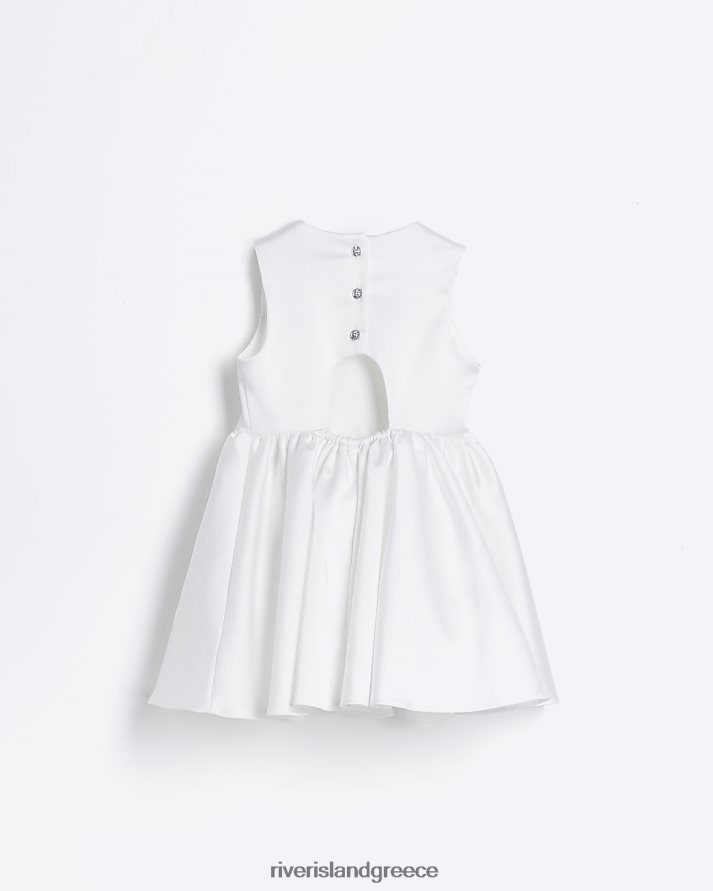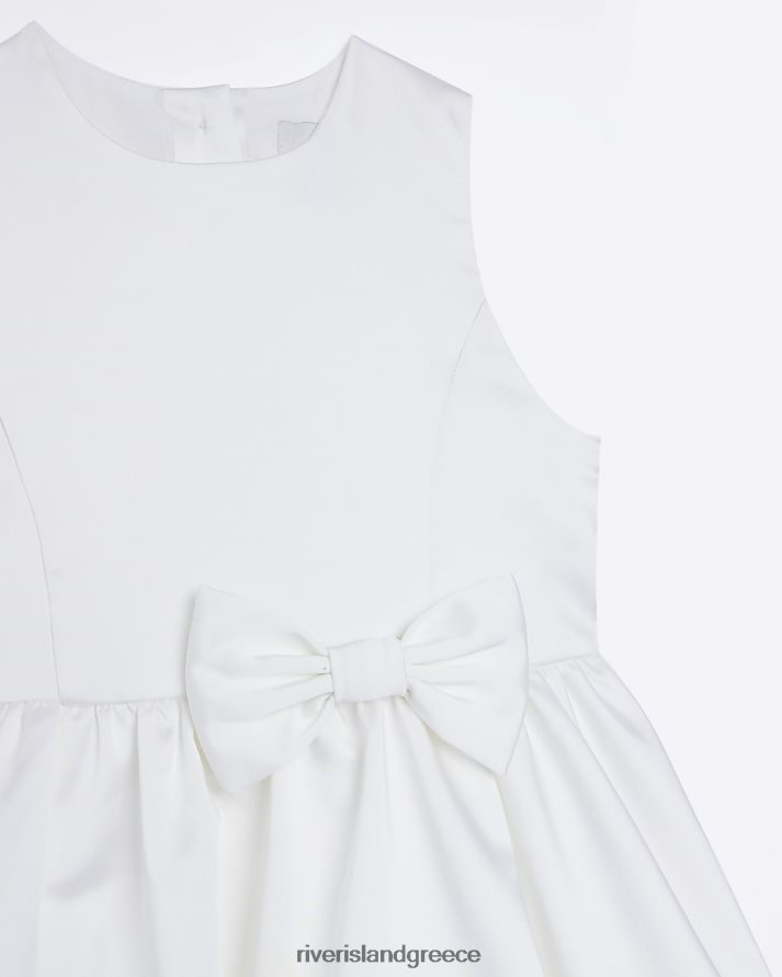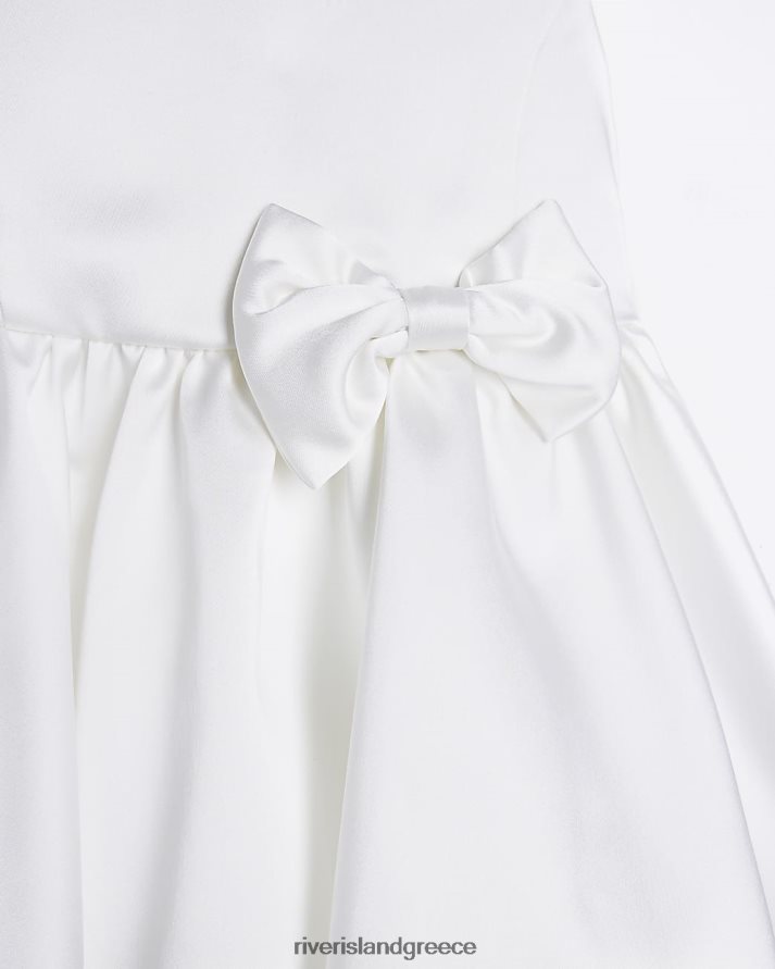 River Island ενδύματα άσπρο κορίτσια g σατέν φιόγκο skater φόρεμα B6N8X6337