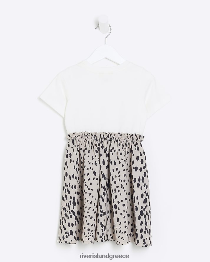 River Island ενδύματα άσπρο κορίτσια mg λεοπάρ υβριδικό t-shirt φόρεμα B6N8X3567