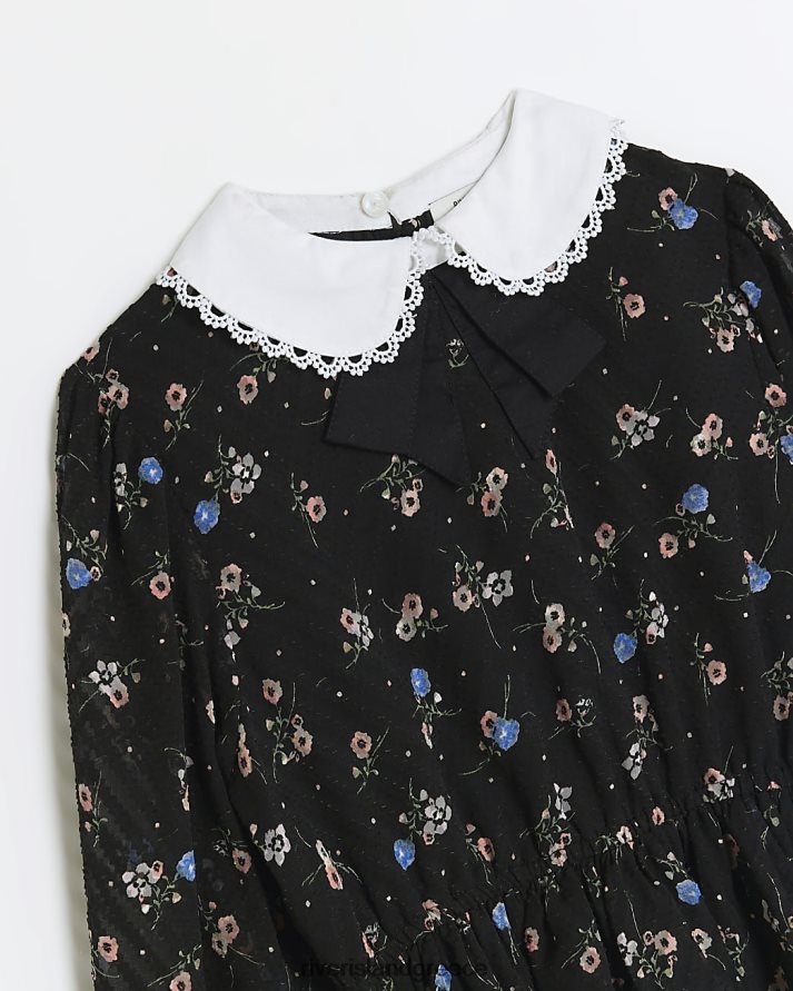 River Island ενδύματα μαύρος κορίτσια g πουκάμισο φόρεμα με γιακά B6N8X6222