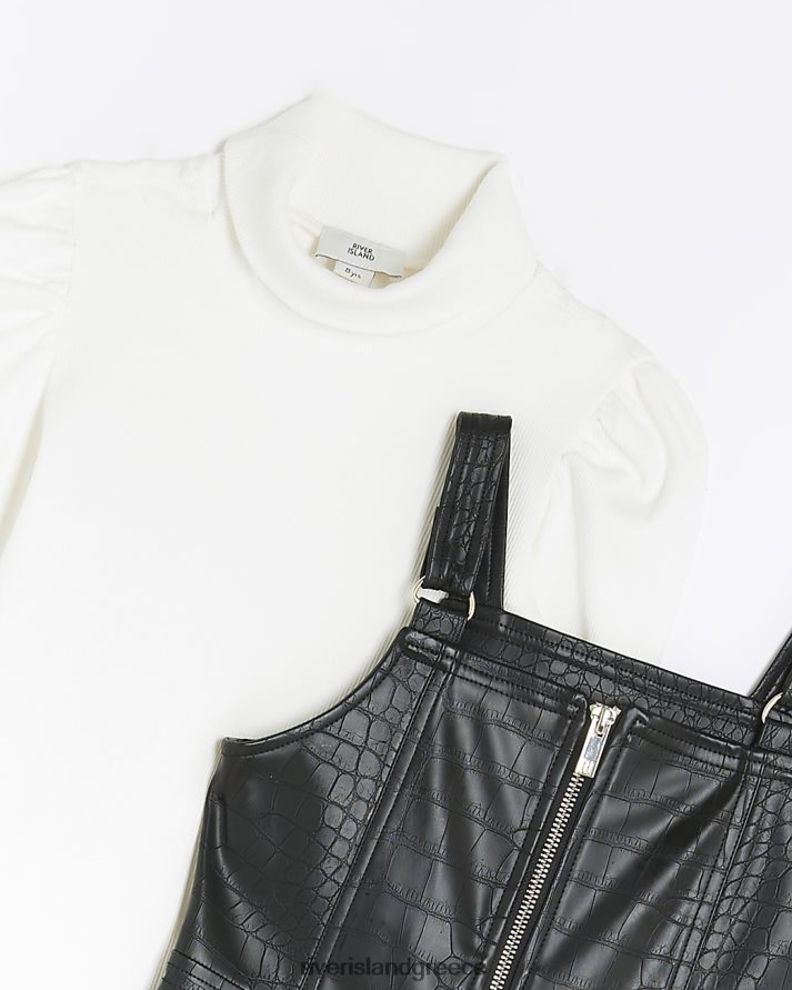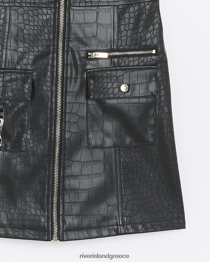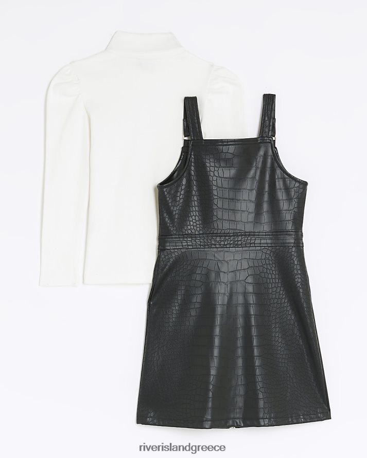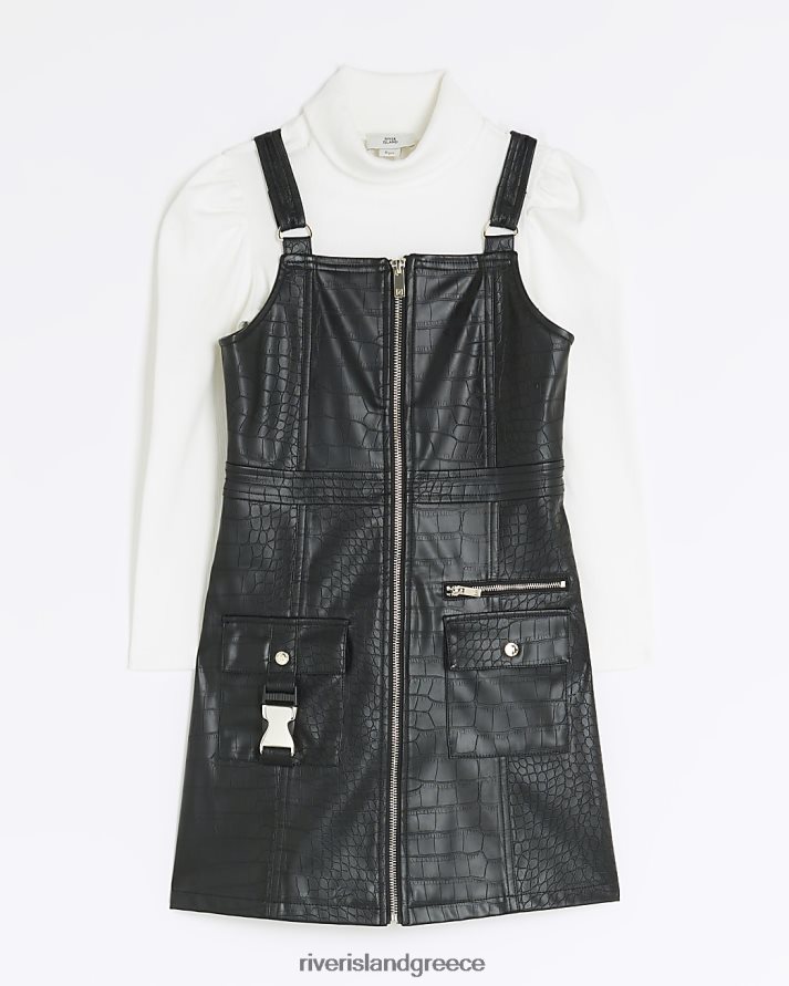 River Island ενδύματα μαύρος κορίτσια g φόρεμα pinafore από συνθετικό δέρμα B6N8X6146