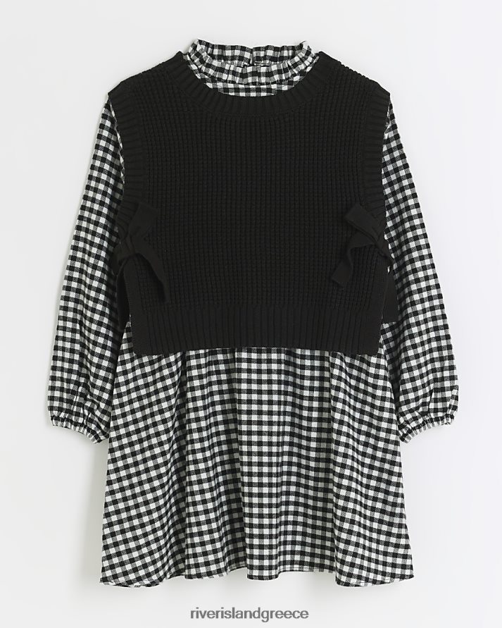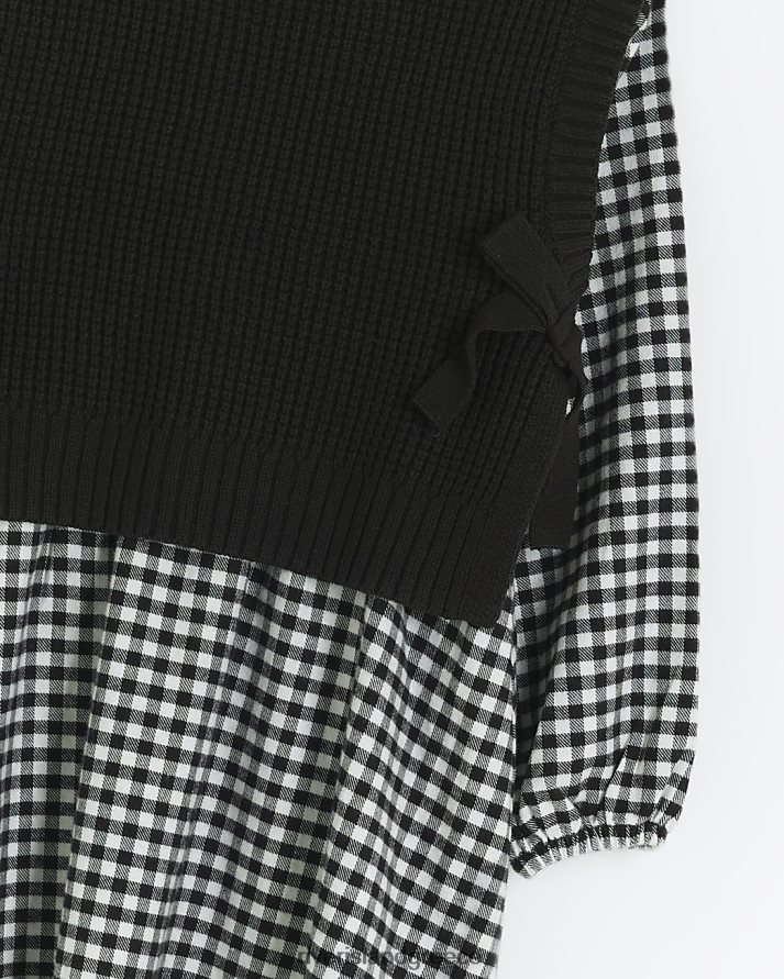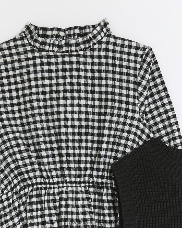 River Island ενδύματα μαύρος κορίτσια g gingham υβριδικό πλεκτό σετ φορέματος B6N8X6050