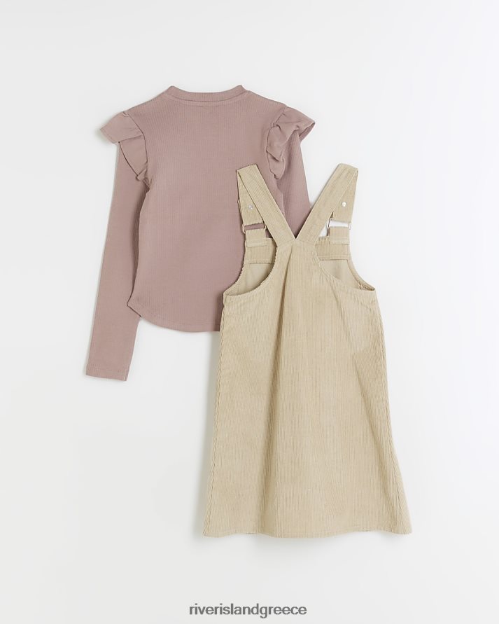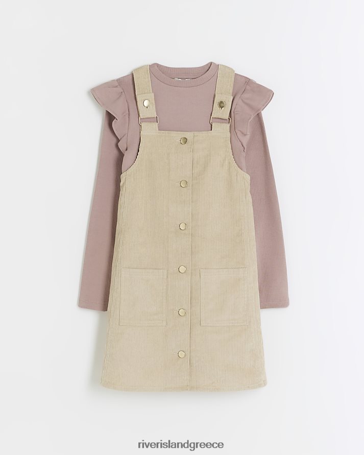 River Island ενδύματα μπεζ κορίτσια g κορδόνι pinafore σετ φόρεμα B6N8X6095
