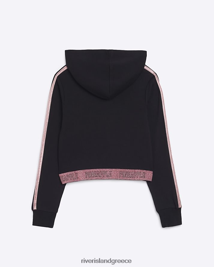 River Island ενδύματα μαύρος κορίτσια g φούτερ με κουκούλα με ταινία γκλίτερ ανανά B6N8X6492