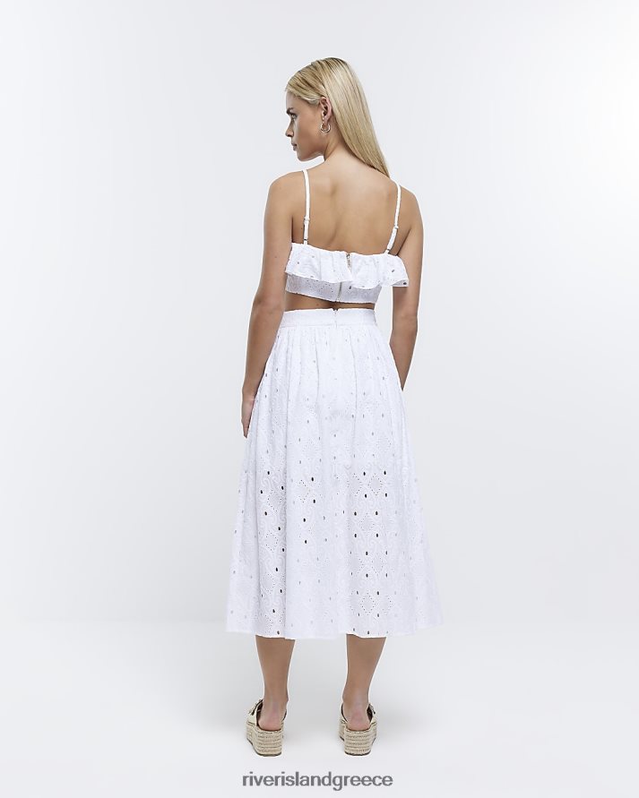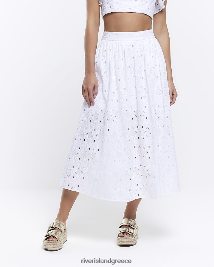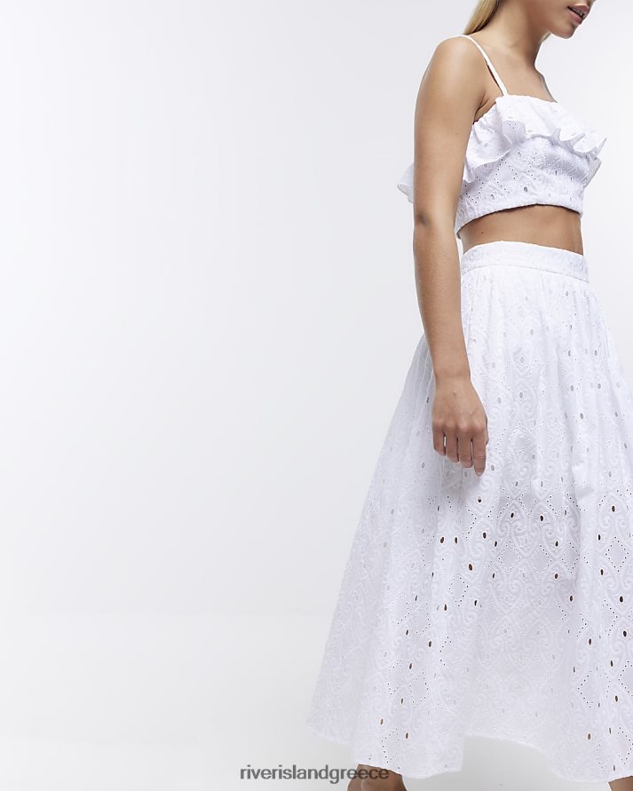 River Island ενδύματα άσπρο γυναίκες petite broderie midi φούστα B6N8X5311