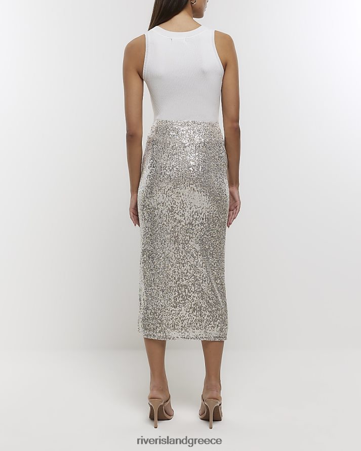 River Island ενδύματα ασήμι γυναίκες μίντι φούστα παγιέτα B6N8X1442