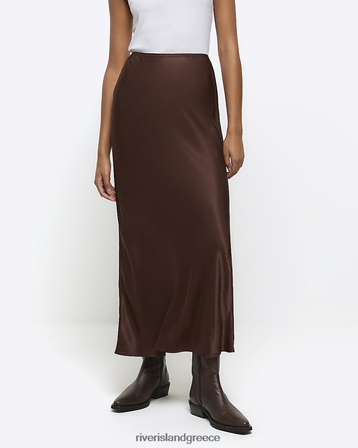 River Island ενδύματα καφέ γυναίκες σατέν μάξι φούστα B6N8X35
