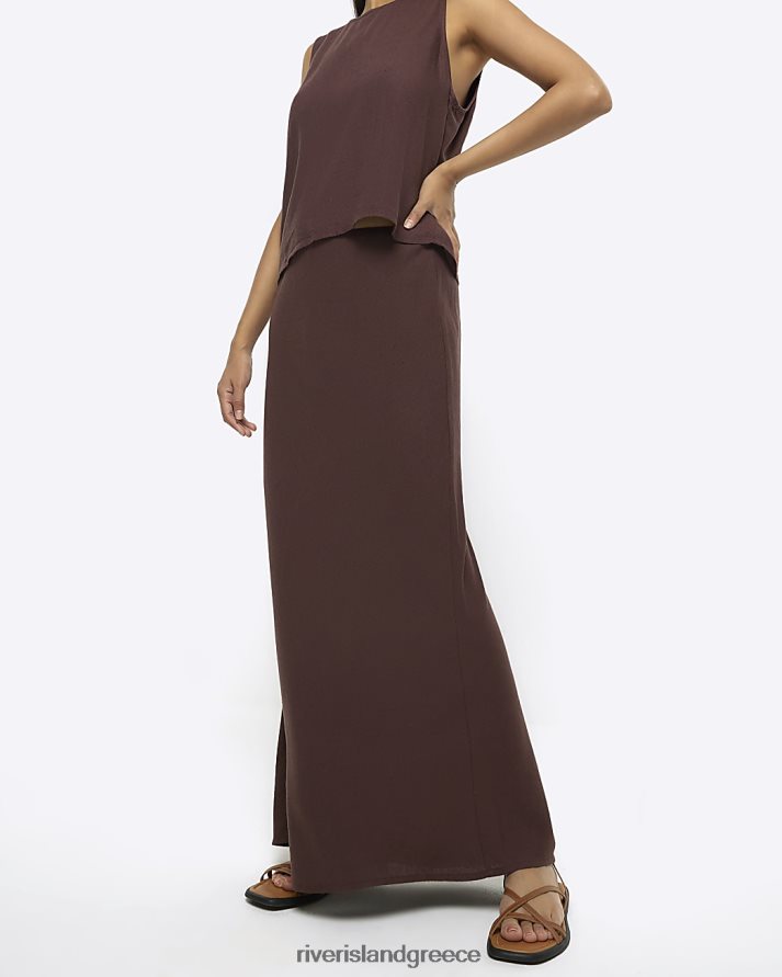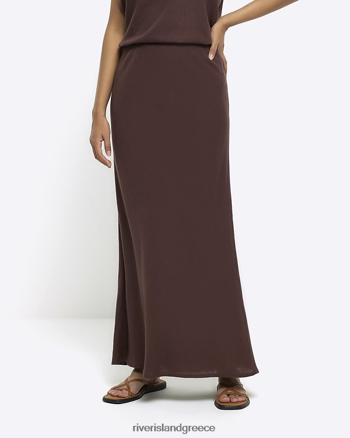 River Island ενδύματα καφέ γυναίκες maxi bias φούστα με λινό B6N8X4382