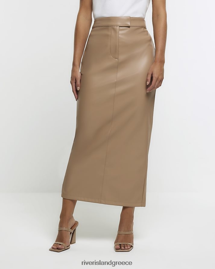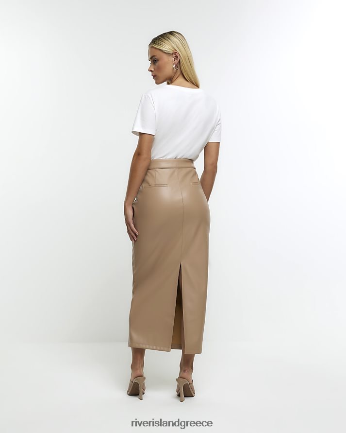 River Island ενδύματα καφέ γυναίκες midi φούστα από petite faux δέρμα B6N8X5233