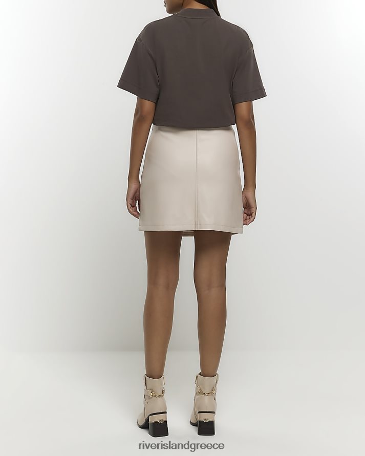 River Island ενδύματα κρέμα γυναίκες Μίνι φούστα με αγκράφα από ψεύτικο δέρμα B6N8X28