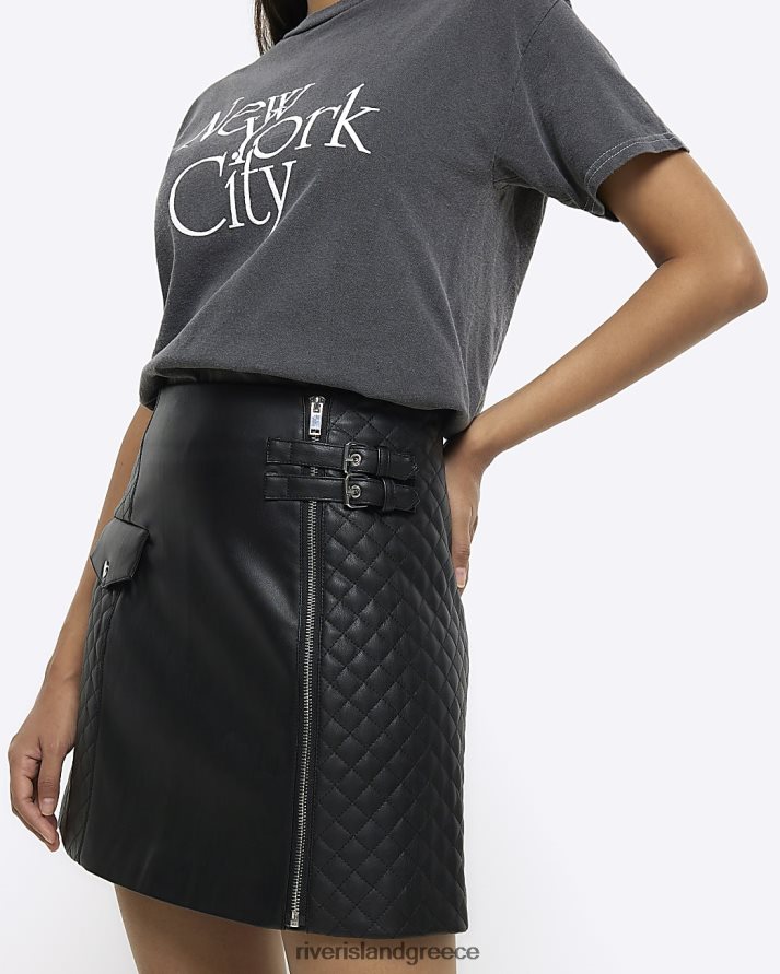 River Island ενδύματα μαύρος γυναίκες Μίνι φούστα με καπιτονέ από ψεύτικο δέρμα B6N8X4215