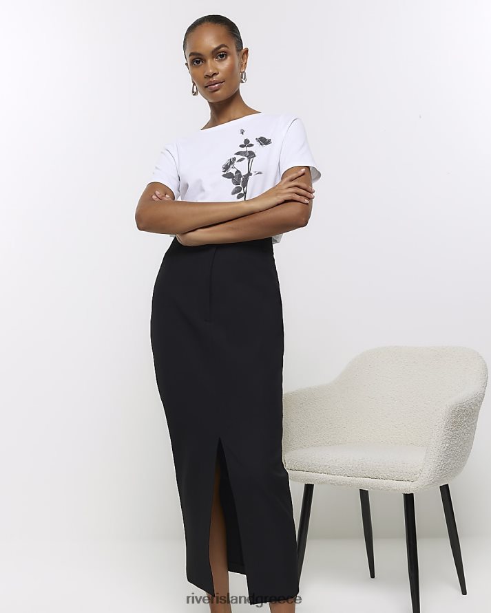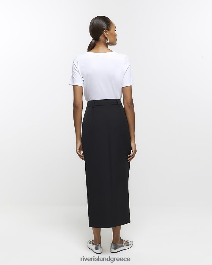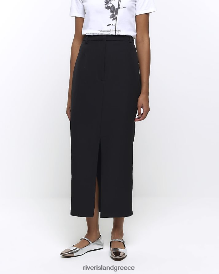 River Island ενδύματα μαύρος γυναίκες μπροστινή μοιρασμένη pencil midi φούστα B6N8X210