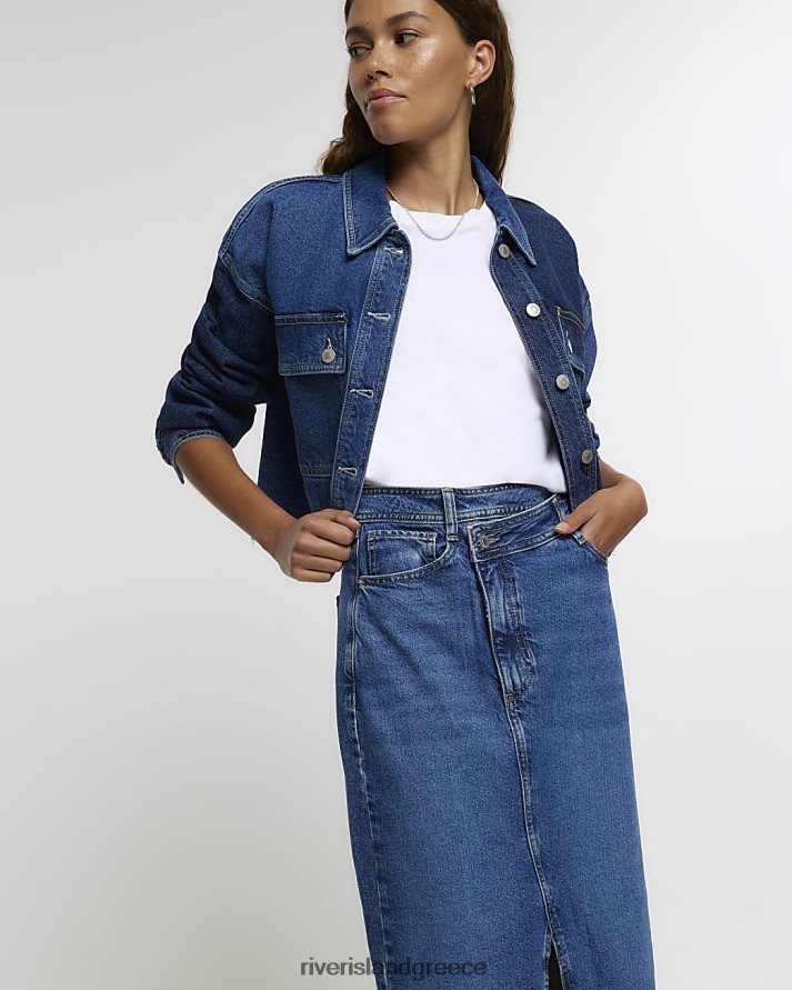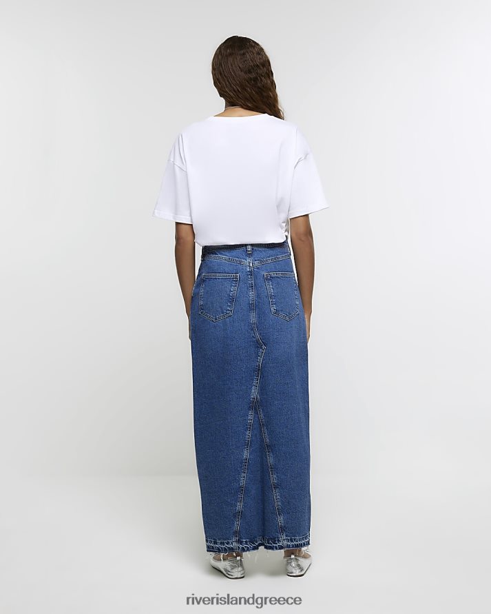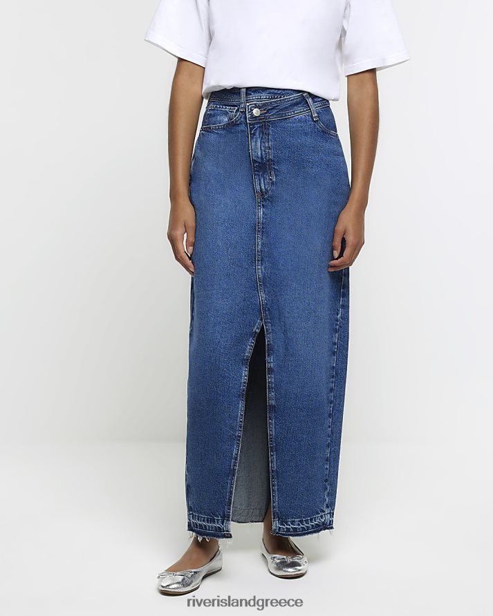 River Island ενδύματα μπλε γυναίκες ασύμμετρη τζιν μάξι φούστα μέσης B6N8X170
