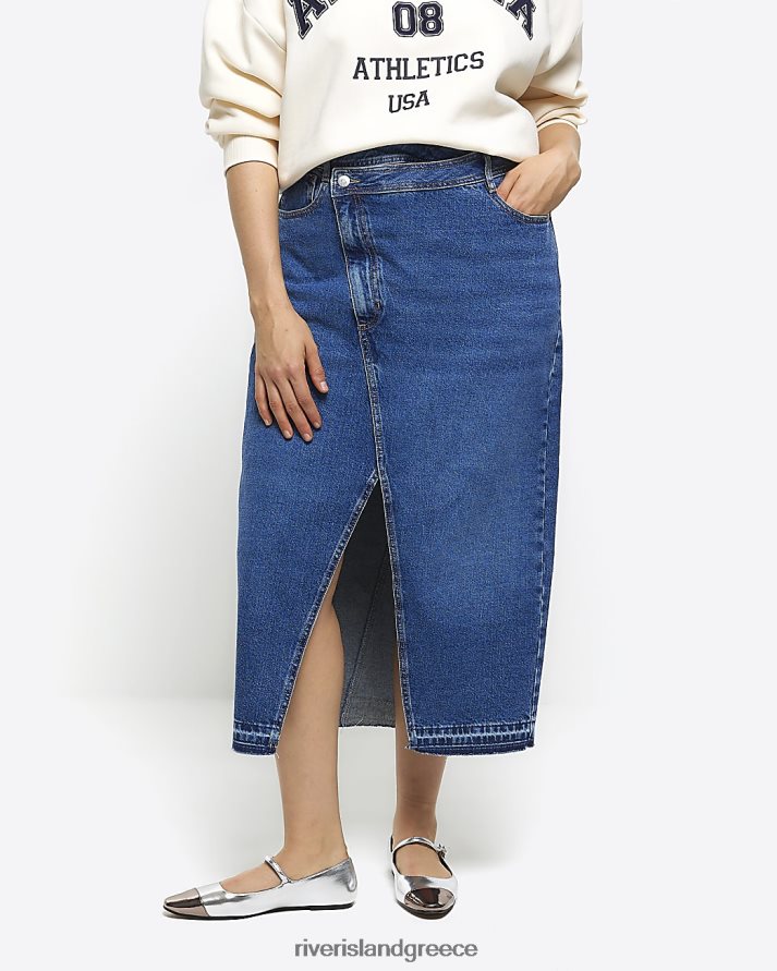 River Island ενδύματα μπλε γυναίκες συν ασύμμετρη τζιν μάξι φούστα μέσης B6N8X5033
