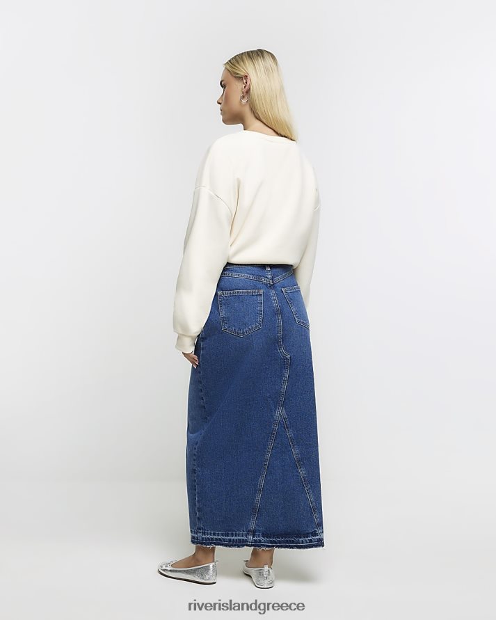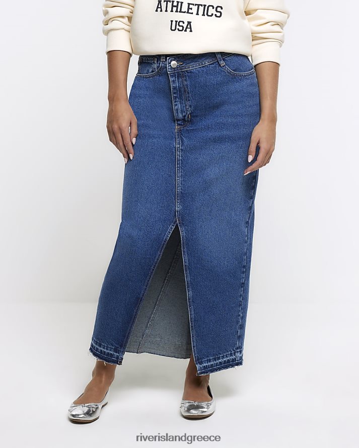 River Island ενδύματα μπλε γυναίκες petite ασύμμετρη τζιν μάξι φούστα στη μέση B6N8X5222