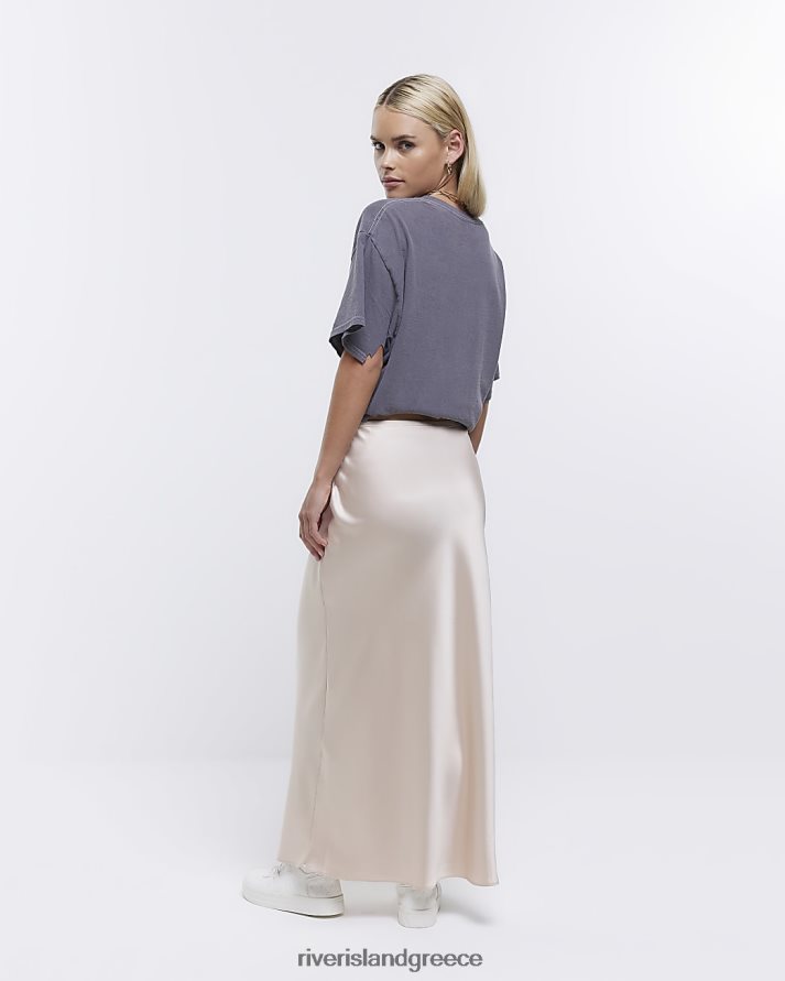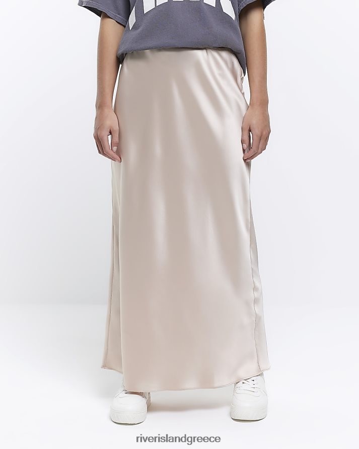 River Island ενδύματα πέτρα γυναίκες μικροκαμωμένη σατέν μάξι φούστα B6N8X2283
