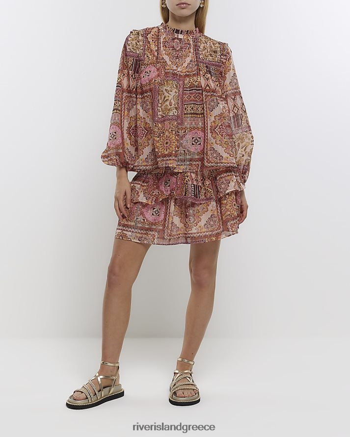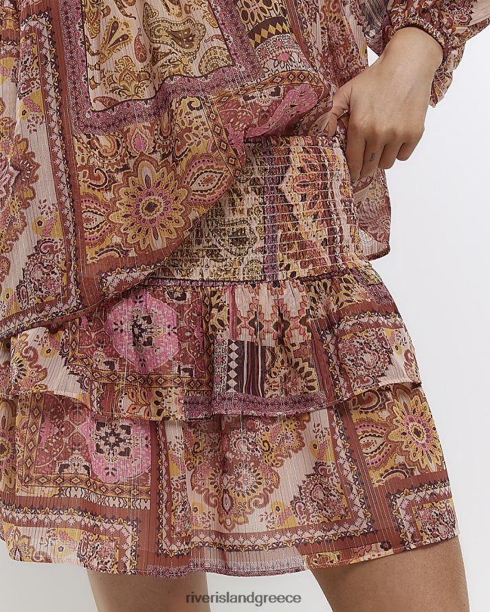 River Island ενδύματα ροζ γυναίκες Μίνι φούστα paisley shirred B6N8X1279
