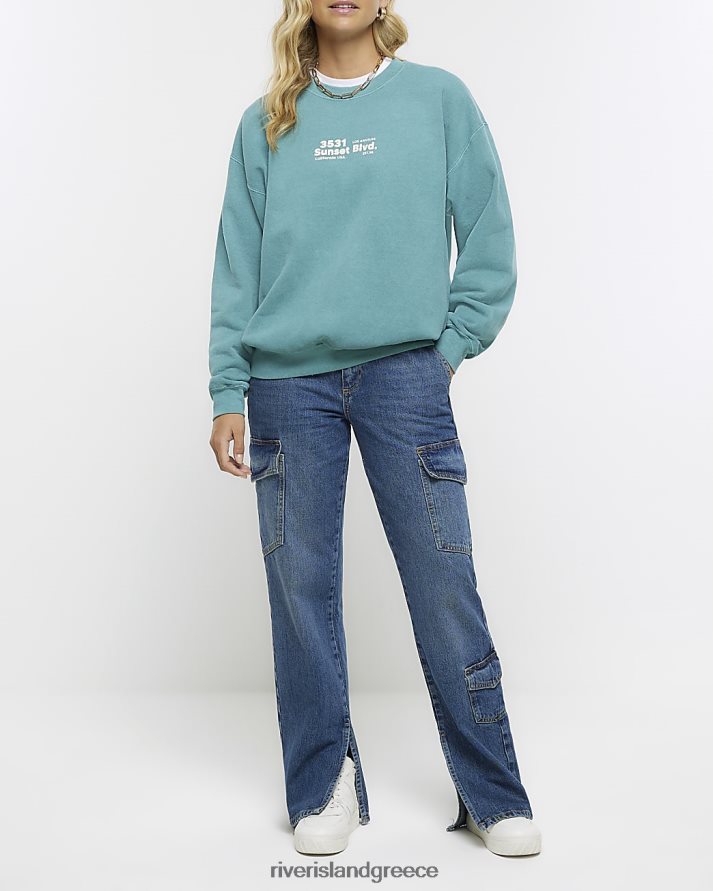 River Island ενδύματα πράσινος γυναίκες φούτερ με γραφικά στάμπα B6N8X678