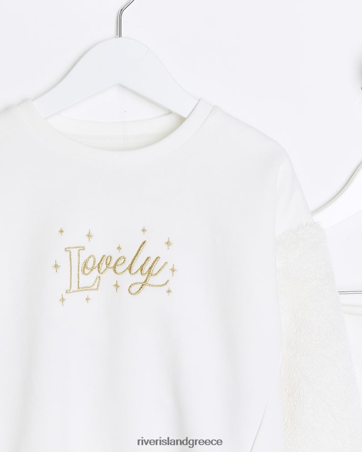 River Island ενδύματα κρέμα κορίτσια mg σετ φούτερ από ψεύτικη γούνα B6N8X6530