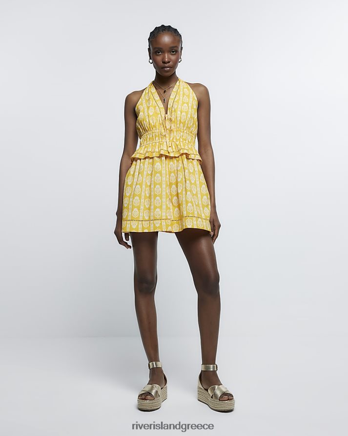 River Island ενδύματα κίτρινος γυναίκες φόρμα παιχνιδιού με halter λαιμόκοψη B6N8X1898