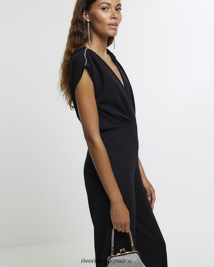 River Island ενδύματα μαύρος γυναίκες διακοσμημένη φαρδιά φόρμα B6N8X4119