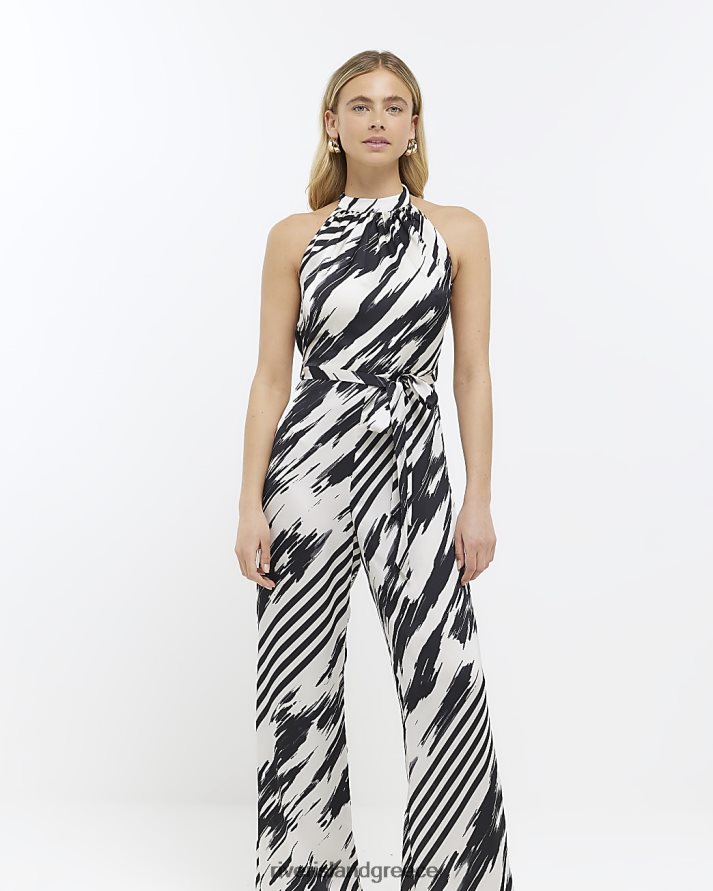 River Island ενδύματα μαύρος γυναίκες Ολόσωμη φόρμα με ριγέ halter λαιμόκοψη B6N8X1696