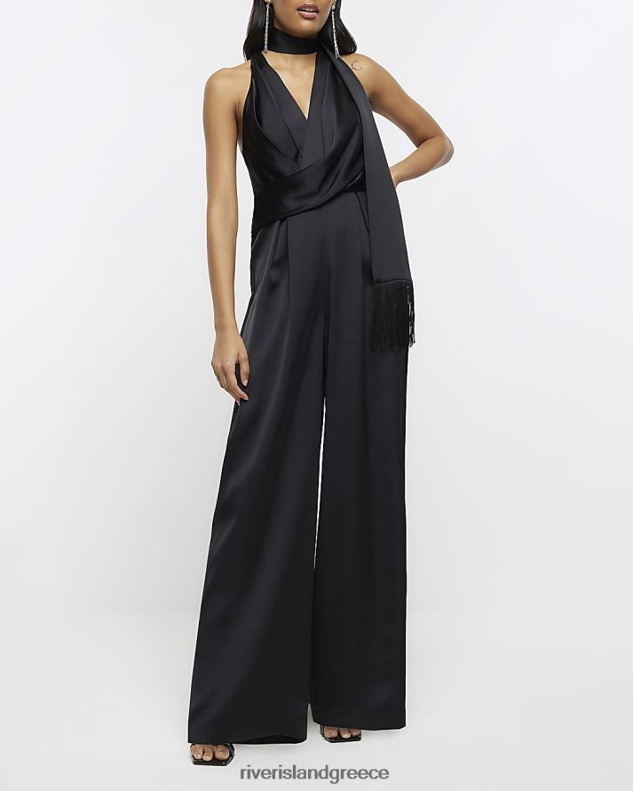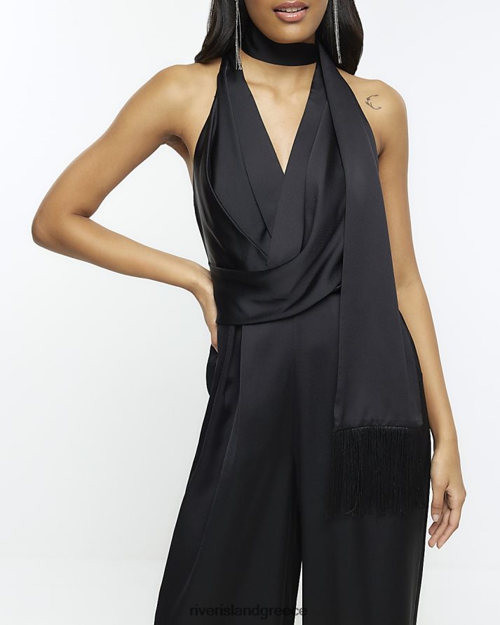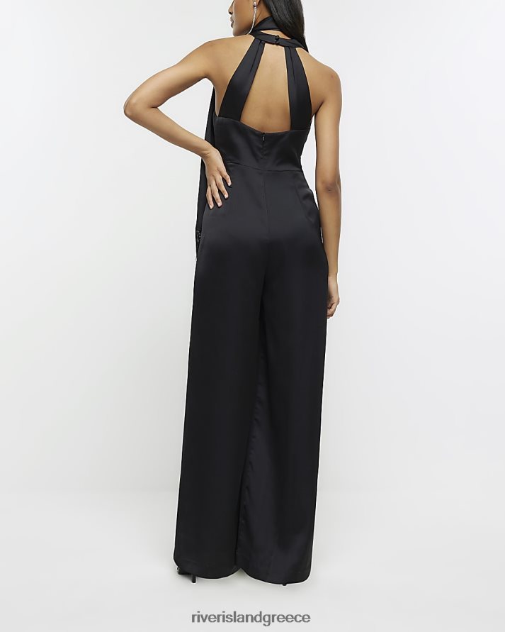 River Island ενδύματα μαύρος γυναίκες σατέν φόρμα με ανοιχτή πλάτη B6N8X3963