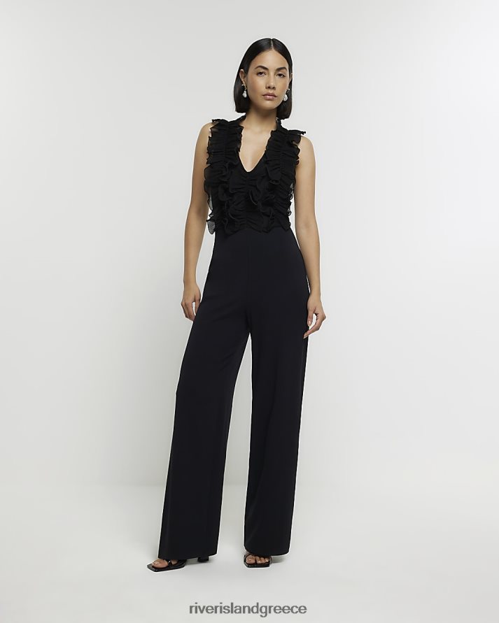 River Island ενδύματα μαύρος γυναίκες φόρμα με φαρδιά μπατζάκια B6N8X3968