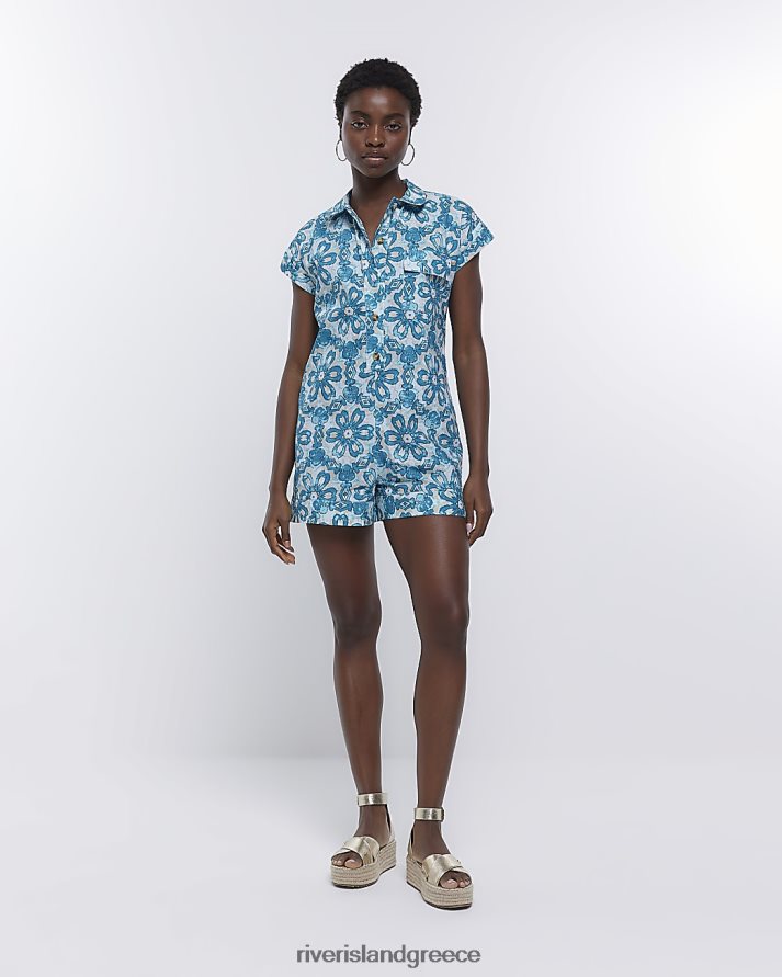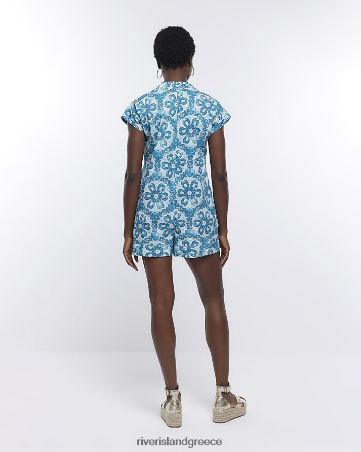 River Island ενδύματα μπλε γυναίκες Αζτέκο κοντομάνικο playsuit B6N8X4818