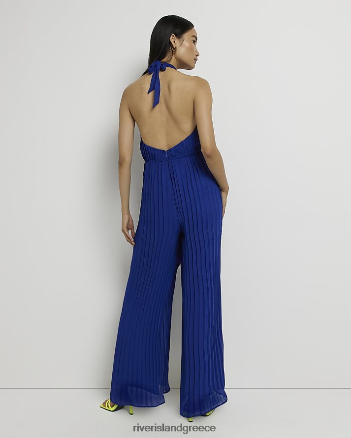 River Island ενδύματα μπλε γυναίκες Ολόσωμη φόρμα με φαρδύ πόδι με λαιμόκοψη B6N8X2110