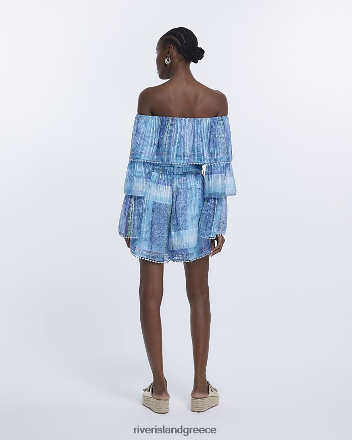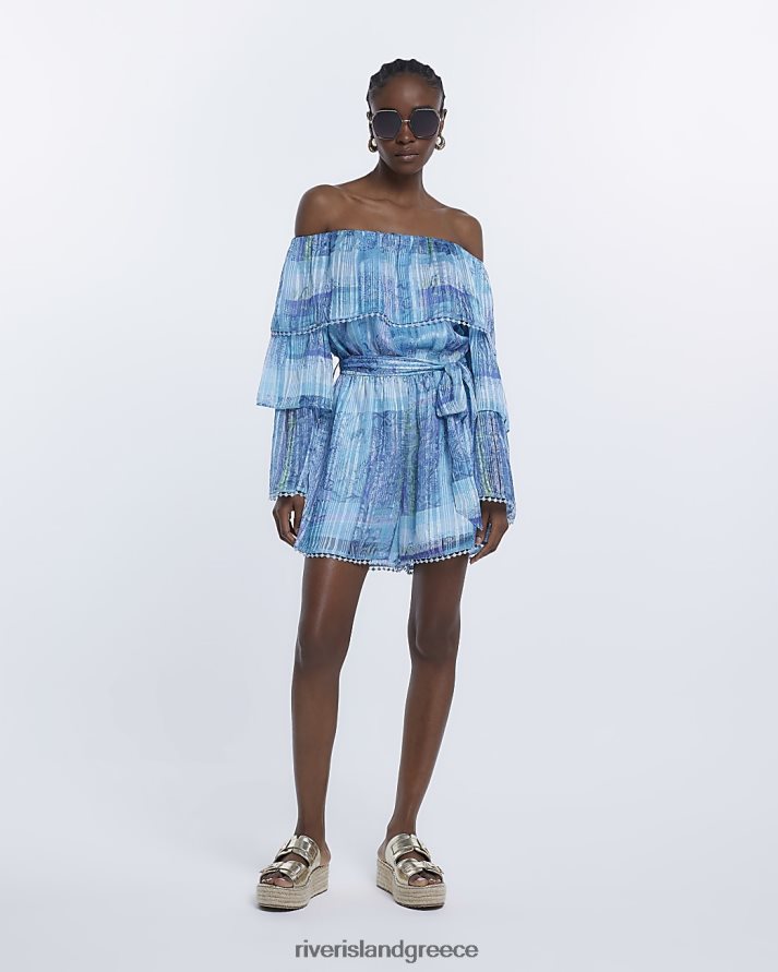 River Island ενδύματα μπλε γυναίκες στάμπα bardot playsuit B6N8X1602