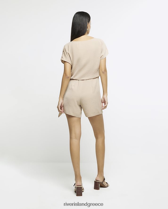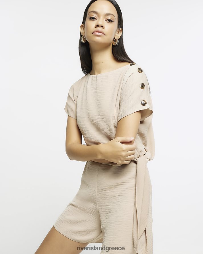 River Island ενδύματα πέτρα γυναίκες τυλίξτε κοντομάνικο φόρμα παιχνιδιού B6N8X1853