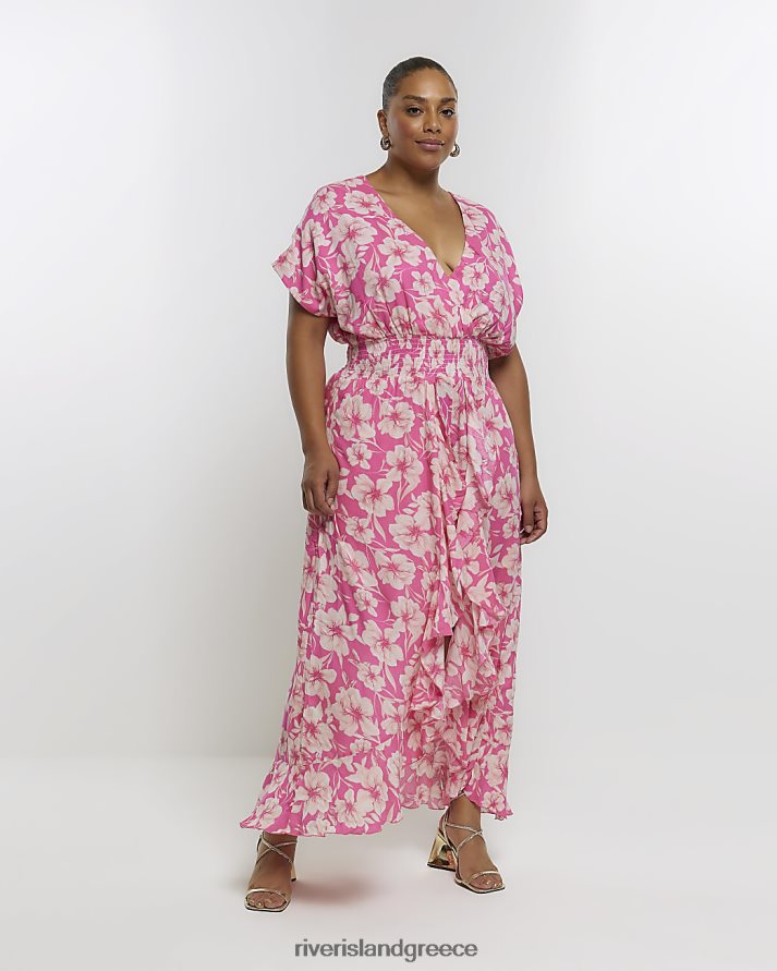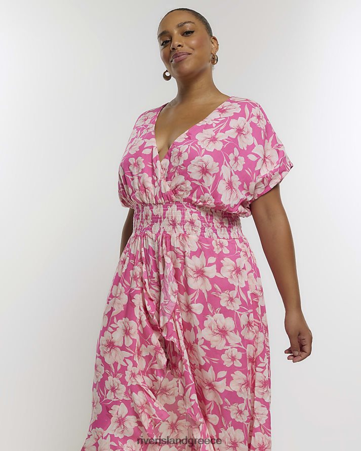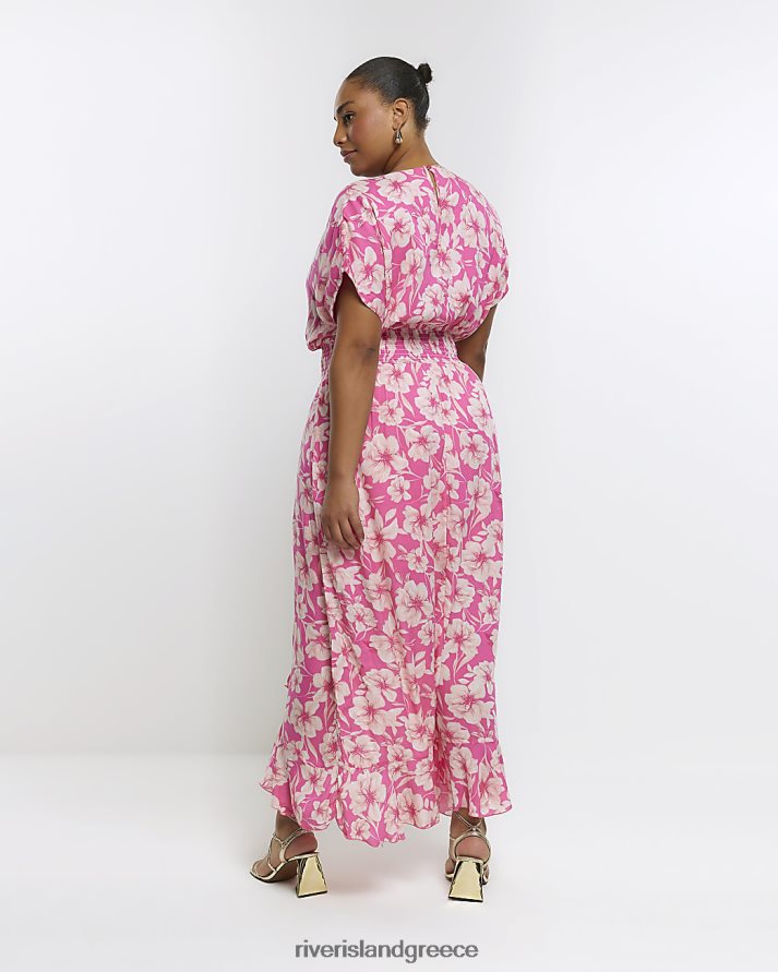 River Island ενδύματα ροζ γυναίκες συν φλοράλ ασύμμετρη φόρμα παιχνιδιού B6N8X5121